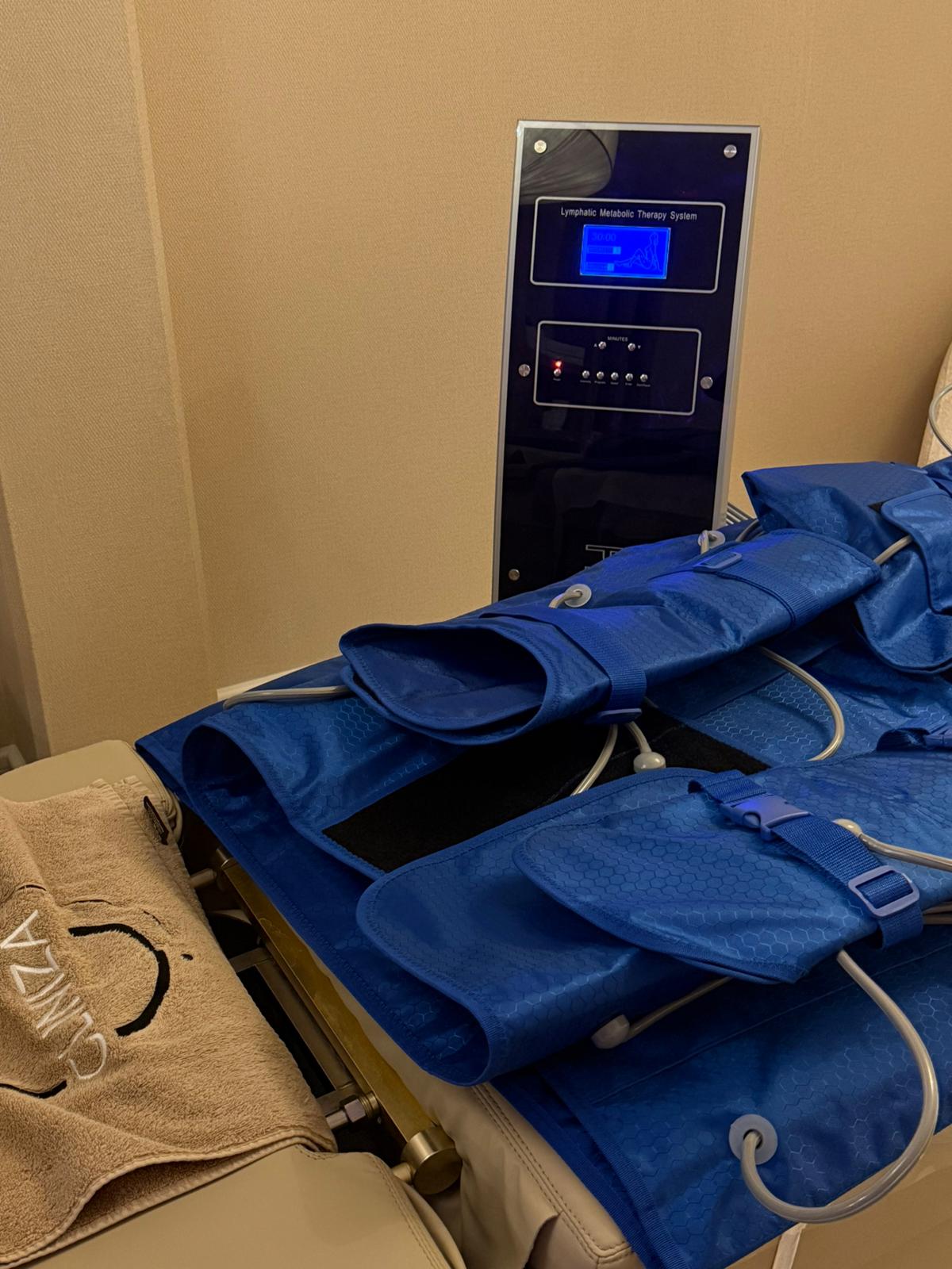 Lymfedrainage in een pak is een moderne, comfortabele manier om je lymfestelsel te activeren. Je ligt ontspannen terwijl een speciaal pak met luchtkamers ritmische druk geeft. Deze zachte, pulserende bewegingen stimuleren de afvoer van vocht en afvalstoffen, waardoor je lichaam zich lichter en energieker voelt.